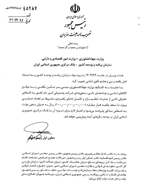 این بخشنامه توسط سرپرست ریاست جمهوری ابلاغ شد.