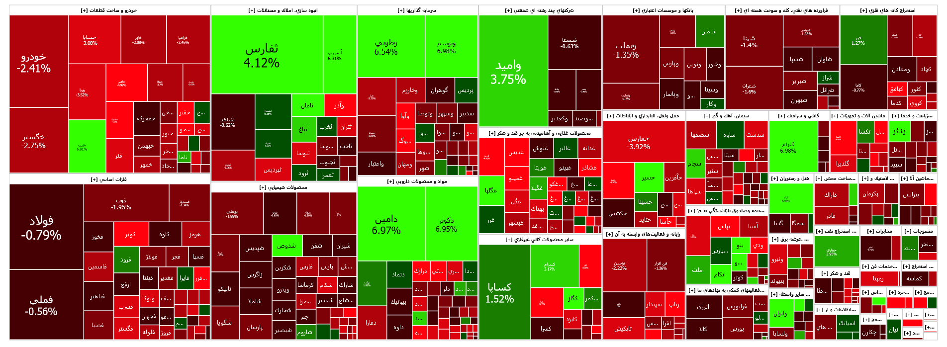 در این روز به ترتیب نمادهای فارس، فولاد، وبملت و شپنا بیشترین تاثیر منفی را بر شاخص کل بازار سرمایه داشتند و عامل افت بازار سرمایه شدند.
